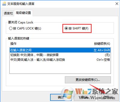 5、選擇“按Caps Lock鍵”,點擊“應(yīng)用”即可生效。