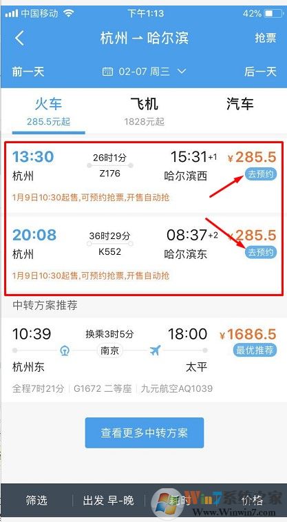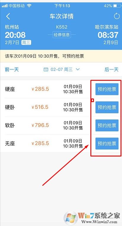 3、選擇自己所要乘坐的車(chē)次。