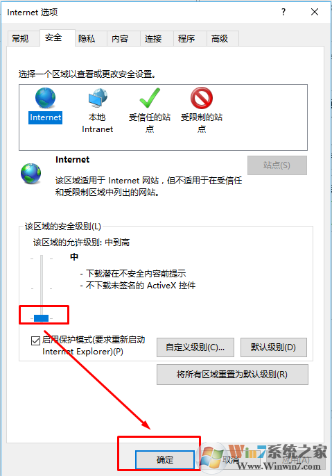 第二步:查看安全Internet安全選項級別是否設(shè)置過高。