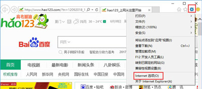 1、打開IE,左鍵點擊右上角齒輪,點選【internet選項】。