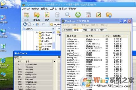3、按Ctrl + Alt + Delete,【啟動(dòng)任務(wù)管理器】,在HideToolz里面找到你想要隱藏的運(yùn)行程序,鼠標(biāo)單擊右鍵——選擇隱藏,然后在任務(wù)管理器里面就很清楚的看見(jiàn)你想隱藏的運(yùn)行程序已經(jīng)不見(jiàn)了。