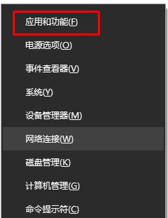 1、在開始菜單上單擊鼠標右鍵,選擇【應(yīng)用和功能】;