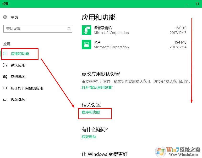 在應(yīng)用和功能下找到程序和功能。