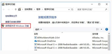 2、在左上角點擊【啟用或關(guān)閉Windows 功能】;