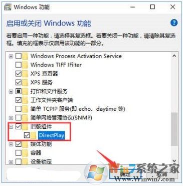 2、找到DirectPlay 前面點勾,點擊確定,然后確定,重啟電腦即可。