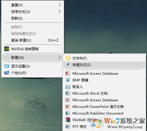 1、首先在桌面空白的地方用點擊鼠標右鍵,創(chuàng)建個“快捷方式”。