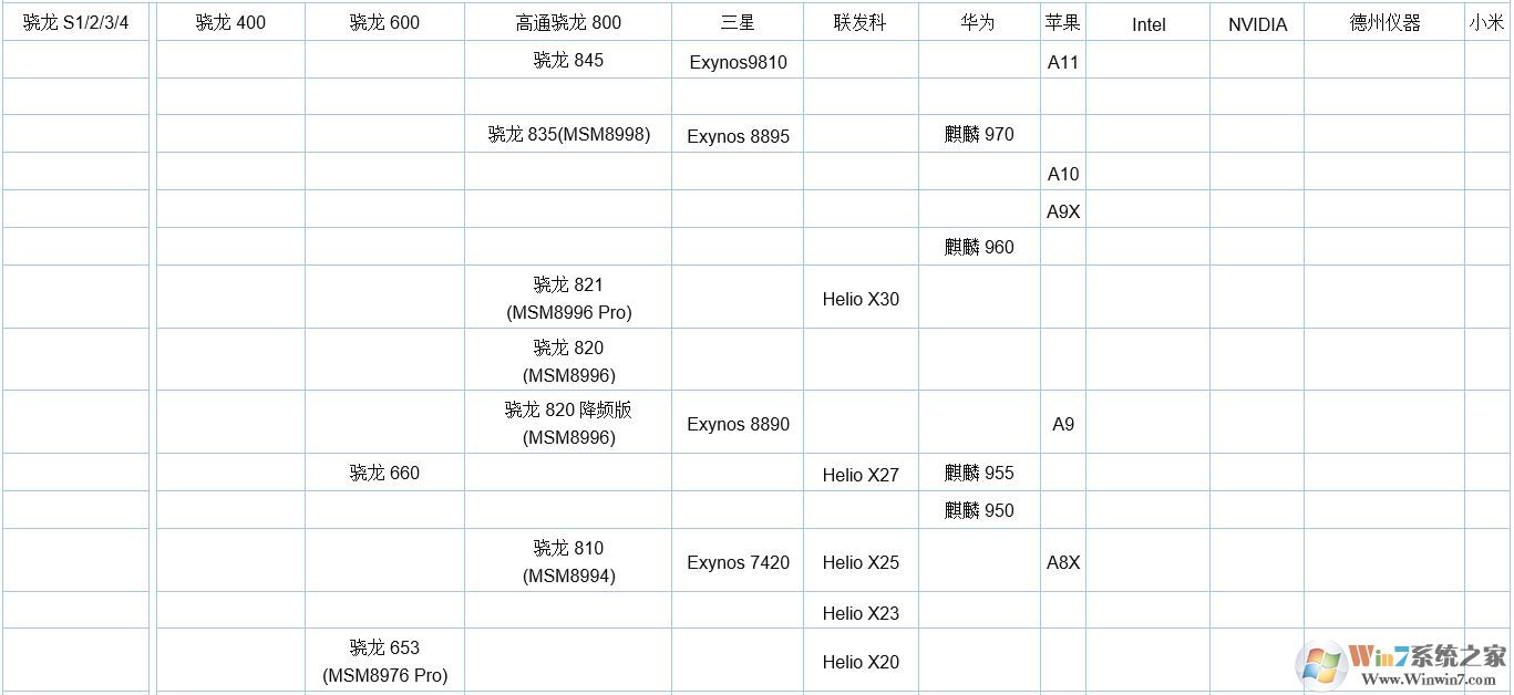| 高端CPU | 高通 | 聯(lián)發(fā)科 | 蘋果 | 華為 | 三星 | 小米 |