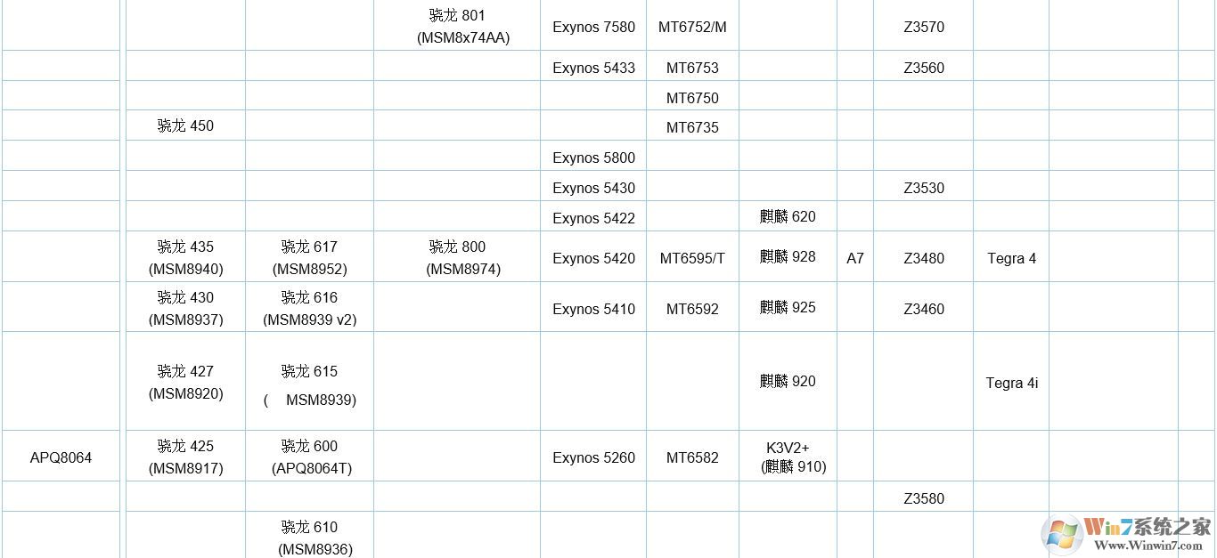 | 驍龍615 | MT6750 | 麒麟620 | ||||