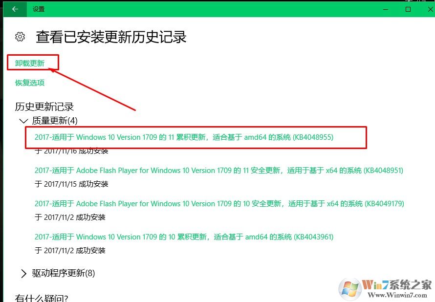 4、記住最新安裝的更新,然后點擊卸載更新。
