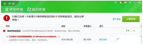 4、檢測完畢后點擊【立即修復】耐心等待完成修復。