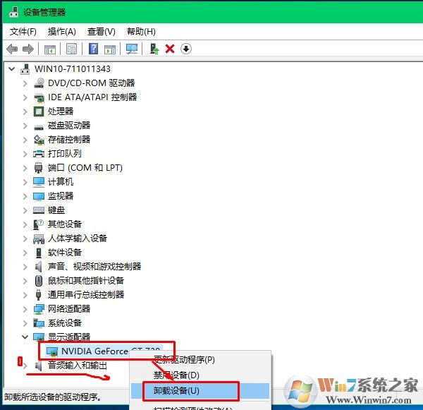 2、再設(shè)備管理中卸載聲卡和顯卡驅(qū)動(dòng)程序。