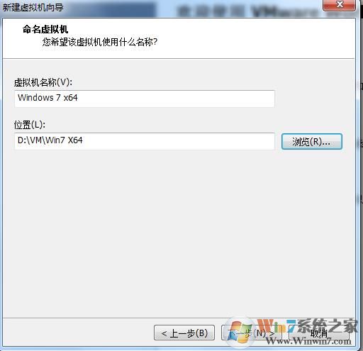 4、填好虛擬機(jī)名稱,選擇一個(gè)磁盤比較空余的地方存放虛擬機(jī)文件(一個(gè)虛擬機(jī)可能需要幾十G);