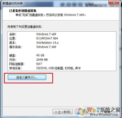 6、接下來(lái)我們需要自定義一下硬件(虛擬機(jī)配置),點(diǎn)擊如下圖;