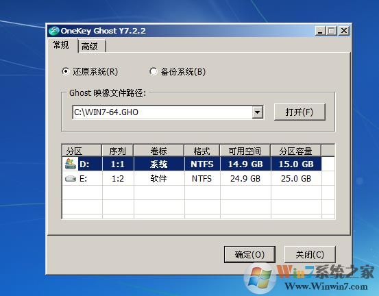 12、分區(qū)完成后,再使用PE中的一鍵裝機(jī) onekey等工具,安裝Win7系統(tǒng);