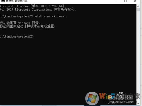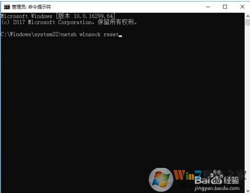 2、在CMD窗口中輸入命令:netsh winsock reset