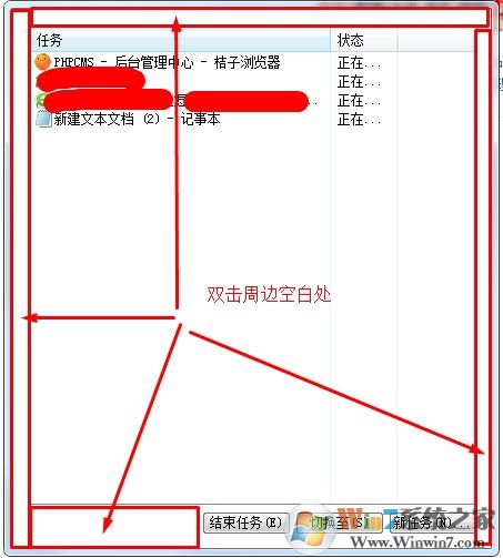 1、找到任務(wù)管理器周邊的空白處,雙擊即可解決,如下圖所示