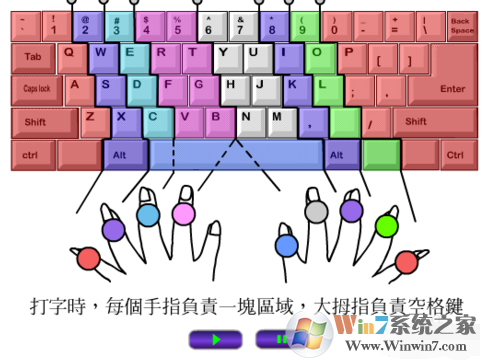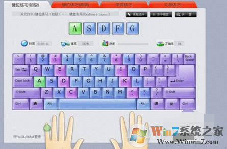 熟悉了這些標準指法以后,剩下的就是按照練習了。也就是說,你可以按照英文26個字母的順序看著鍵盤依次用標準指法去打它們,以一天練習四個字母計算,最多7天你的盲打就基本練習成功了。