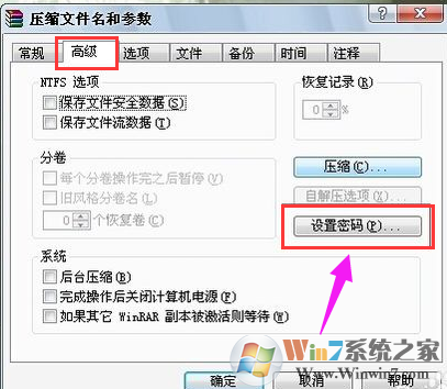 3、高級(jí)選項(xiàng)中有個(gè)“設(shè)置密碼”按鈕,點(diǎn)擊此按鈕,