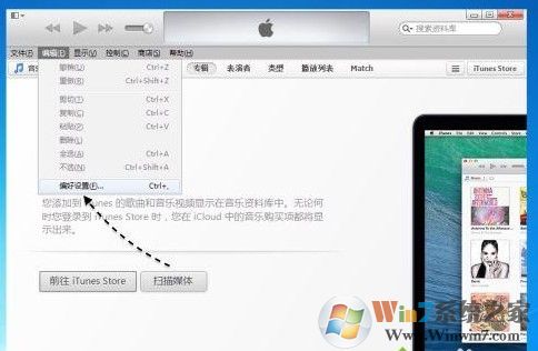 1、如果我們?cè)陔娔X用 iTunes 為 iOS 設(shè)備備份了數(shù)據(jù)的話,可以在 iTunes 看得到。打開 iTunes 軟件以后,請(qǐng)先點(diǎn)擊菜單欄中的“編輯”欄目;