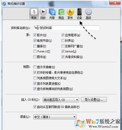 3、隨后在彈出的新窗口中,點(diǎn)擊頂部的“設(shè)備”欄目;