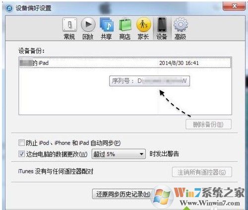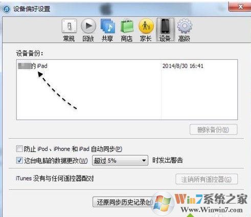 4、接下來即可看到當(dāng)前有沒有設(shè)備在此電腦上備份過,在下圖中可以看到我有一部 iPad 的備份;