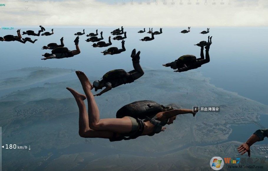 2、控制你的跳傘速度:30-60之間,我推薦平時(shí)保持40左右,即:(開(kāi)傘后)按W提速—松開(kāi)W降速—按W提速,此時(shí)傘的聲音會(huì)像呼吸一樣,呼(提速)吸(降速),操作起來(lái)并不難