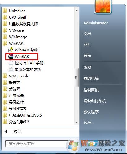 1、從開始—所有程序中找到Winrar,也可以搜索;