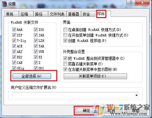 3、在綜合下,點(diǎn)擊全部選擇,然后點(diǎn)擊確定就可以了~(PS:不想關(guān)聯(lián)的不要勾選)
