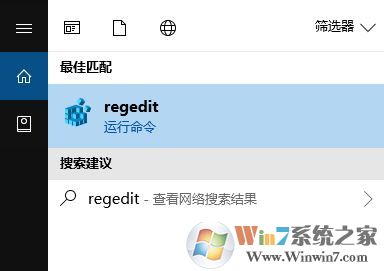1、按下win+Q ,打開小娜,在搜索框中輸入 regedit 按下回車鍵打開注冊表;