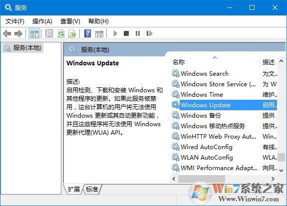 2、在服務窗口找到并關閉 Windows Update 服務;