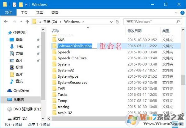 3、找到Softwaredistribution文件夾,C:\windows\SoftwareDistribution,將該文件夾重新命名;
