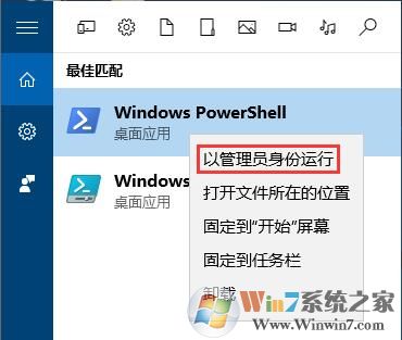 1、在小娜搜索框中搜索Windows PowerShell 在Windows PowerShell上單擊右鍵,選擇【以管理員身份運行】;