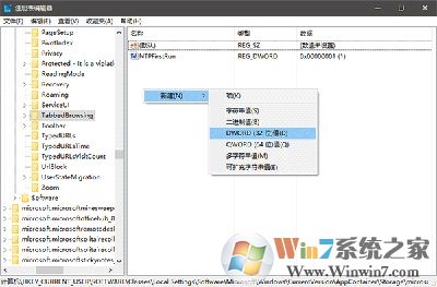 ① 新建DWORD(32位)值,命名為TabPeekHideDelay