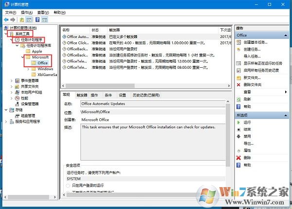 2、選擇“系統(tǒng)工具” - “任務(wù)計劃程序” - “任務(wù)計劃程序庫” - “Microsoft” - “Office”。