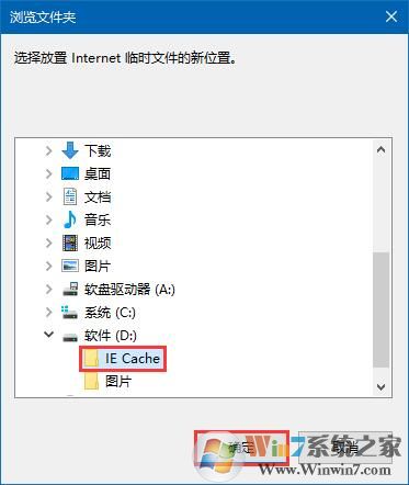 5、在瀏覽文件夾窗口中,選擇剛才新建的 IE Cache 文件夾,點擊確定,
