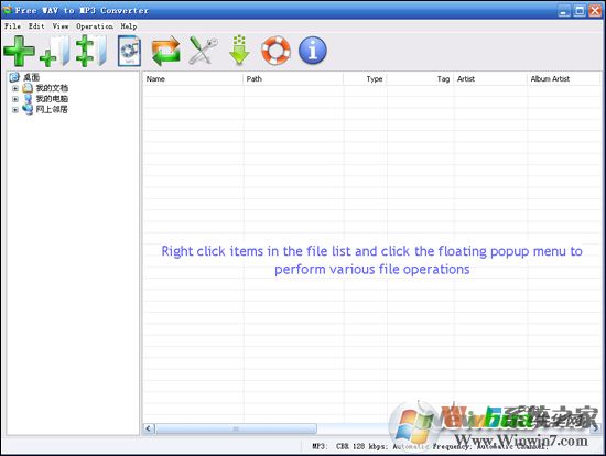 2、安裝完成以后啟動程序,接下來進入Free WAV to MP3 Converter的主界面,這時用戶可以看到Free WAV to MP3 Converter的主界面非常的簡潔,明了,沒有任何復雜的操作。