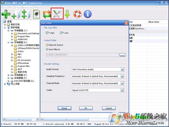 5、接下來單擊主界面上方的“設(shè)置”按鈕,然后在打開的設(shè)置窗口當中設(shè)置音頻的轉(zhuǎn)換格式及轉(zhuǎn)換輸出路徑。