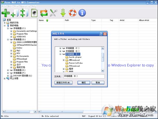 4、用戶也可以使用Free WAV to MP3 Converter進行批量轉(zhuǎn)換,單擊主界面上方的“添加文件夾”按鈕,然后在打開的瀏覽文件夾窗口中選擇要添加的音頻文件夾即可。