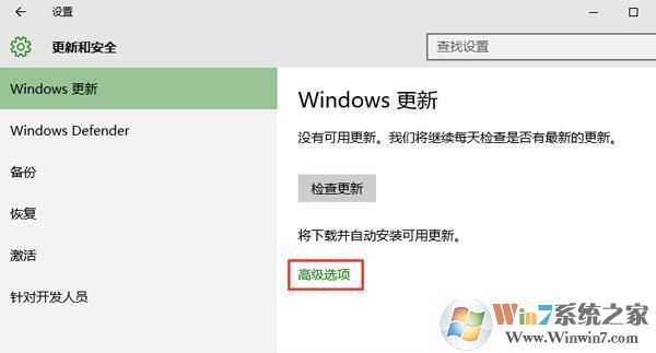 2、調(diào)出更新和安全的設(shè)置窗口后,我們點擊windows更新下的高級選項,如圖所示: