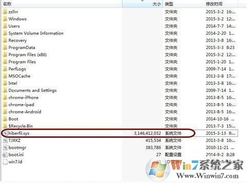 3、看看在C盤里面是不是出現(xiàn)一個hiberfil.sys文件了。