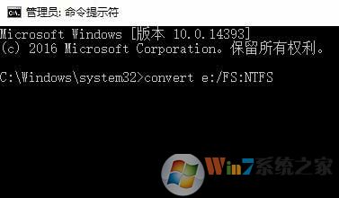 2、在命令提示符框中輸入:convert e:/FS:NTFS (將e 改成自己家電腦u盤的磁盤盤符即可,切記) 按下回車鍵,經(jīng)過一段時間后U盤即可轉(zhuǎn)換為FS:NTFS 格式,即可將大文件復(fù)制到U盤中。