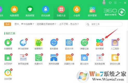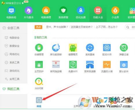 打開360安全衛(wèi)士,點右下角的【更多】,然后再點左下角的【編輯】,此時可以刪除【軟件管家】。
