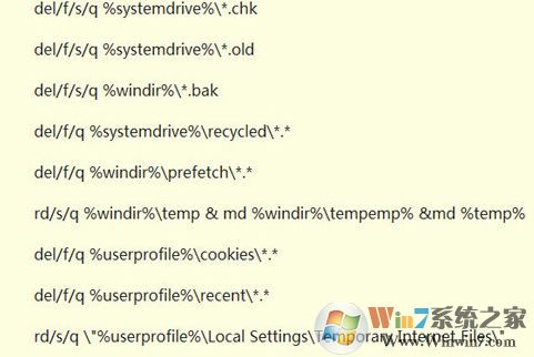 2、輸入完畢后,最后將它保存為后綴名為“bat“的文件,比如“winwin7.bat”,然后我們在“winwin7.bat”文件上單擊右鍵,選擇“以管理員身份運行”,稍等一會,屏幕會提示“系統(tǒng)垃圾清除完成:)”。