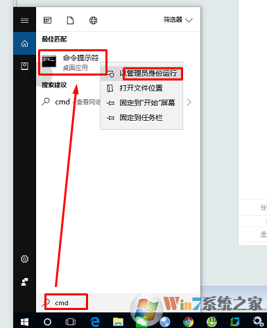 2、右鍵以以管理員身份運行命令提示符,