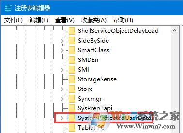 4、在注冊表中依次展開:HKEY_LOCAL_MACHINE\SOFTWARE\Microsoft\Windows\CurrentVersion\SystemProtectedUserData