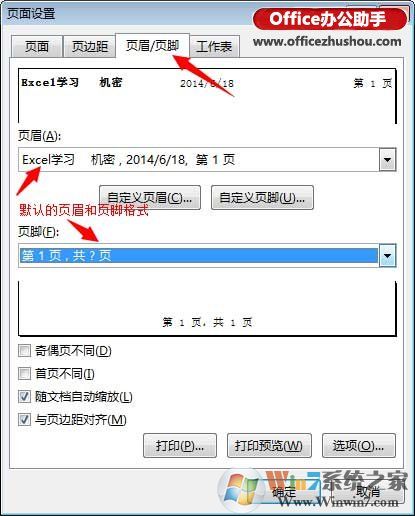 2、在彈出的頁面設(shè)置對話框中,選擇頁眉/頁腳標(biāo)簽,就可以根據(jù)自己的需要設(shè)置頁眉/頁腳了。