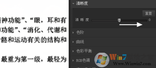 2、通過(guò)調(diào)節(jié)清晰度的數(shù)值可以讓文本清晰起來(lái)。