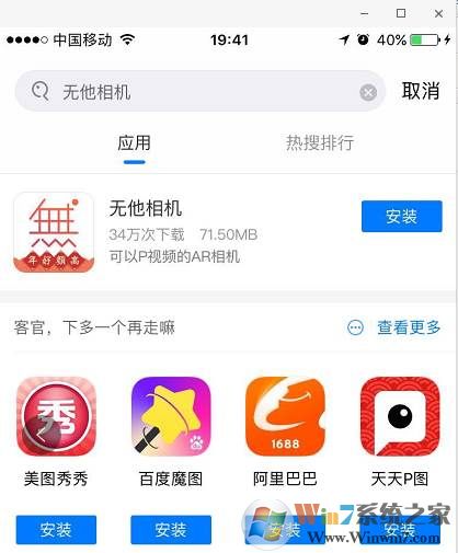 1、在應(yīng)用市場(chǎng)(apple store)中搜索并下載安裝“無他相機(jī)”,小編試了PP助手里也有的下載;