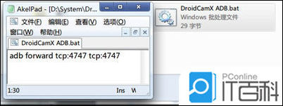 2、為了方便以后使用,建立一個(gè)bat文件,內(nèi)容為adb forward tcp:4747 tcp:4747。