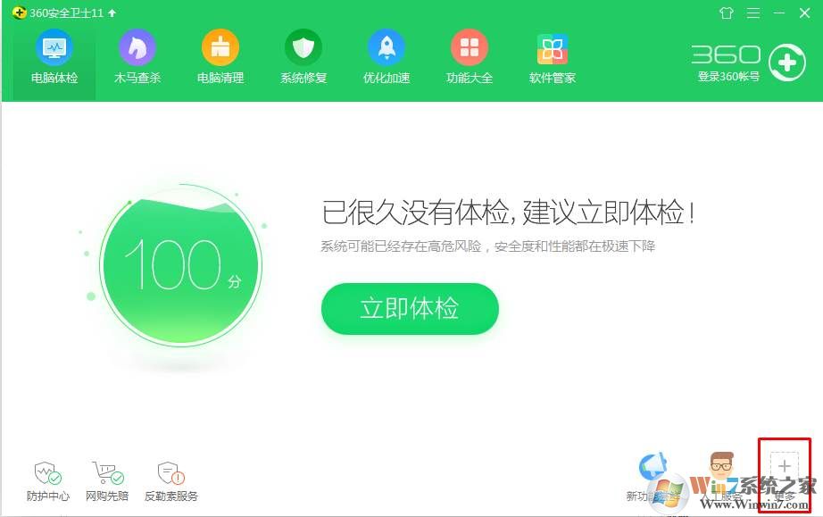 2、打開360主界面后,點(diǎn)擊右下角的“更多”按鈕,如下圖;